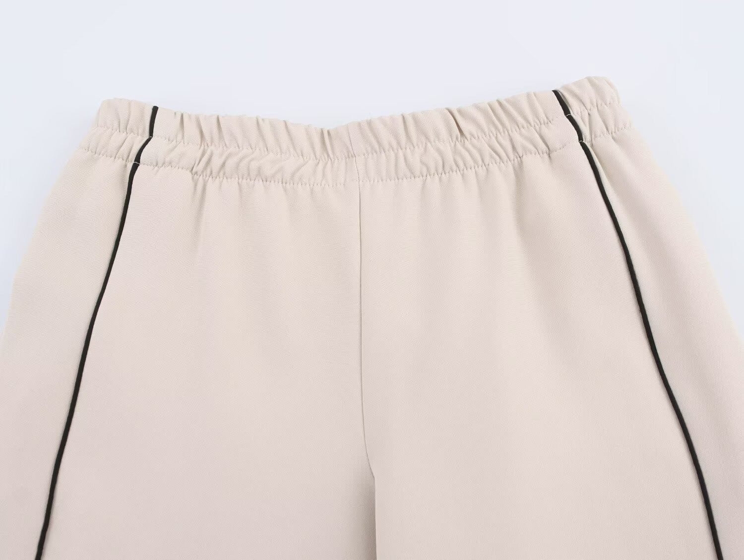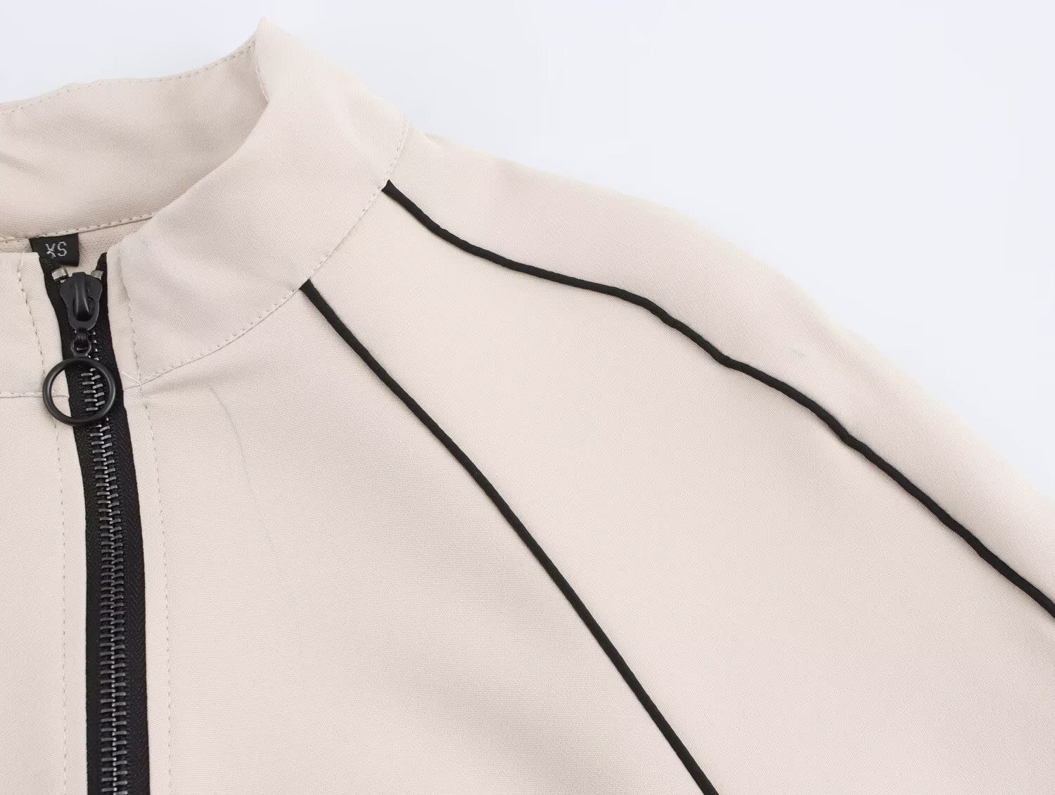 Zweiteiliges Track Suit Set – Beige mit Kontrastlinien